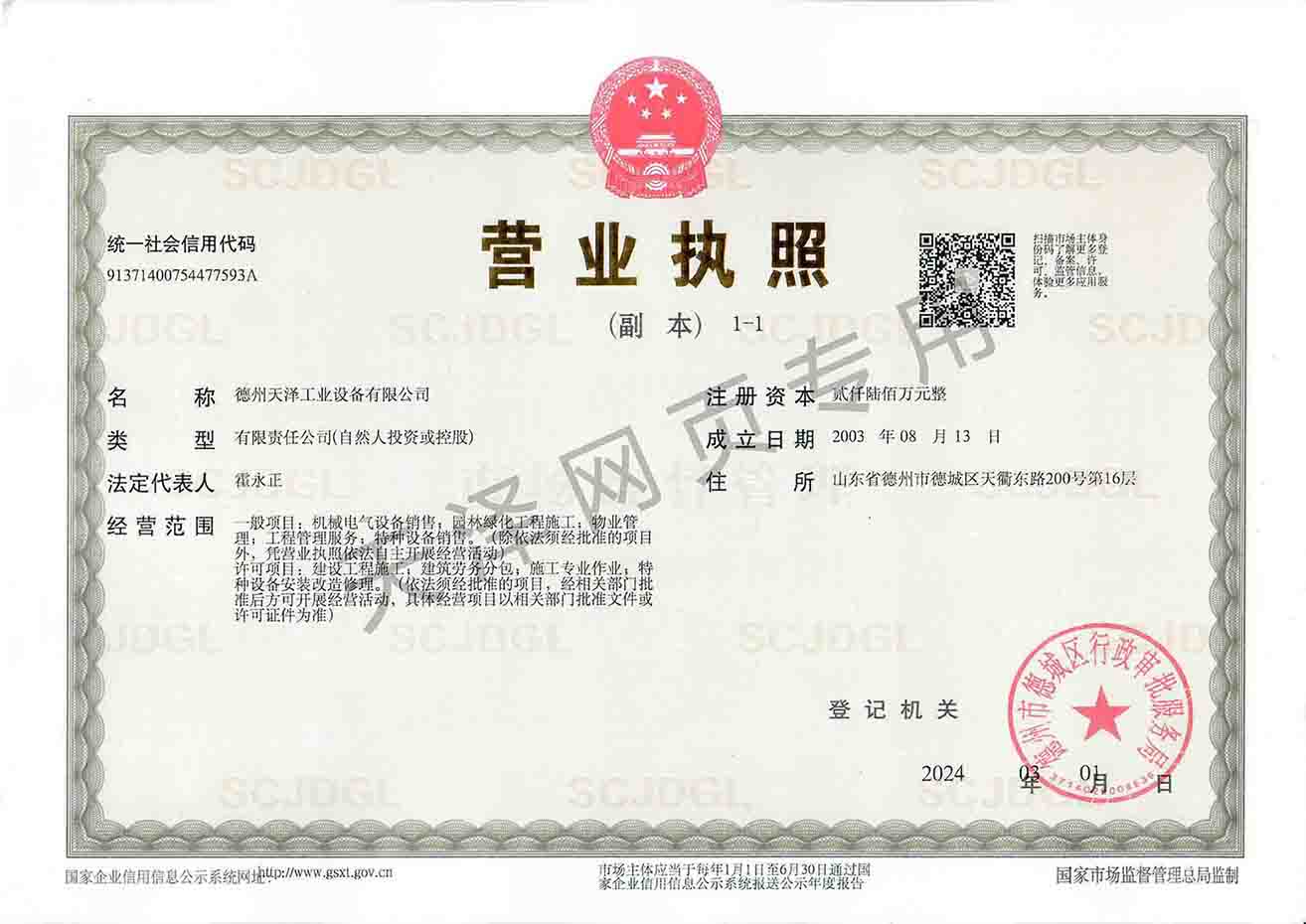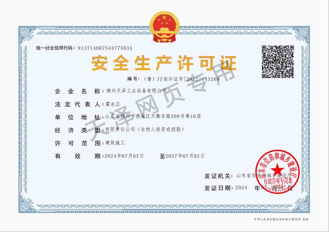 德州天澤工業設備有限公司成立于2003年(前身為德州天元集團天明工業設備安裝公司),經過20多年的發展,現成長為擁有職工600余人,各類專業技術人員近300余人,年生產能力兩億元以上,以建筑機電安裝工程、消防設施安裝工程施工為主,集建筑工程施工、市政工程施工、建筑智能化工程施工、園林綠化工程施工、工程管理服務、物業管理、電氣機械設備銷售等多元化經營于一體的綜合型企業。2005年,企業按照國際標準建立的質量管理體系,通過了ISO質量管理體系認證、環境管理體系認證、職業健康安全管理體系認證。施工工程遍布山東、河北、四川、江蘇等地,最具代表性的工程有:山東省德州市百腦匯資訊廣場機電安裝工程、德州經濟開發區天元大廈機電安裝工程、陵城區人民醫院機電安裝工程、德州金魯班大廈機電安裝工程、河北故城金辰小區機電安裝工程、北川地震災后援建工程等。多年來,公司始終堅持“以人為本,建精品工程,創行業品牌”的經營理念,先后榮獲。ㄊ校┘壧┥奖、天府杯、魯安杯等獎項,申報各種功法、多項專利。